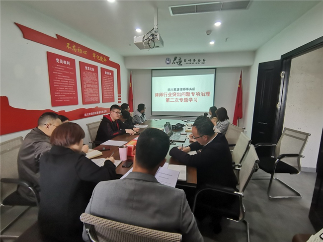 2021年4月9日下午,君唐律师事务所组织全所执业律师、实习律师、行政人员召开律师行业突出问题专项治理自查核查阶段推进会。会上,传达学习了全省司法行政系统(第一批)队伍教育整顿工作推进会、全市政法队伍教育整...